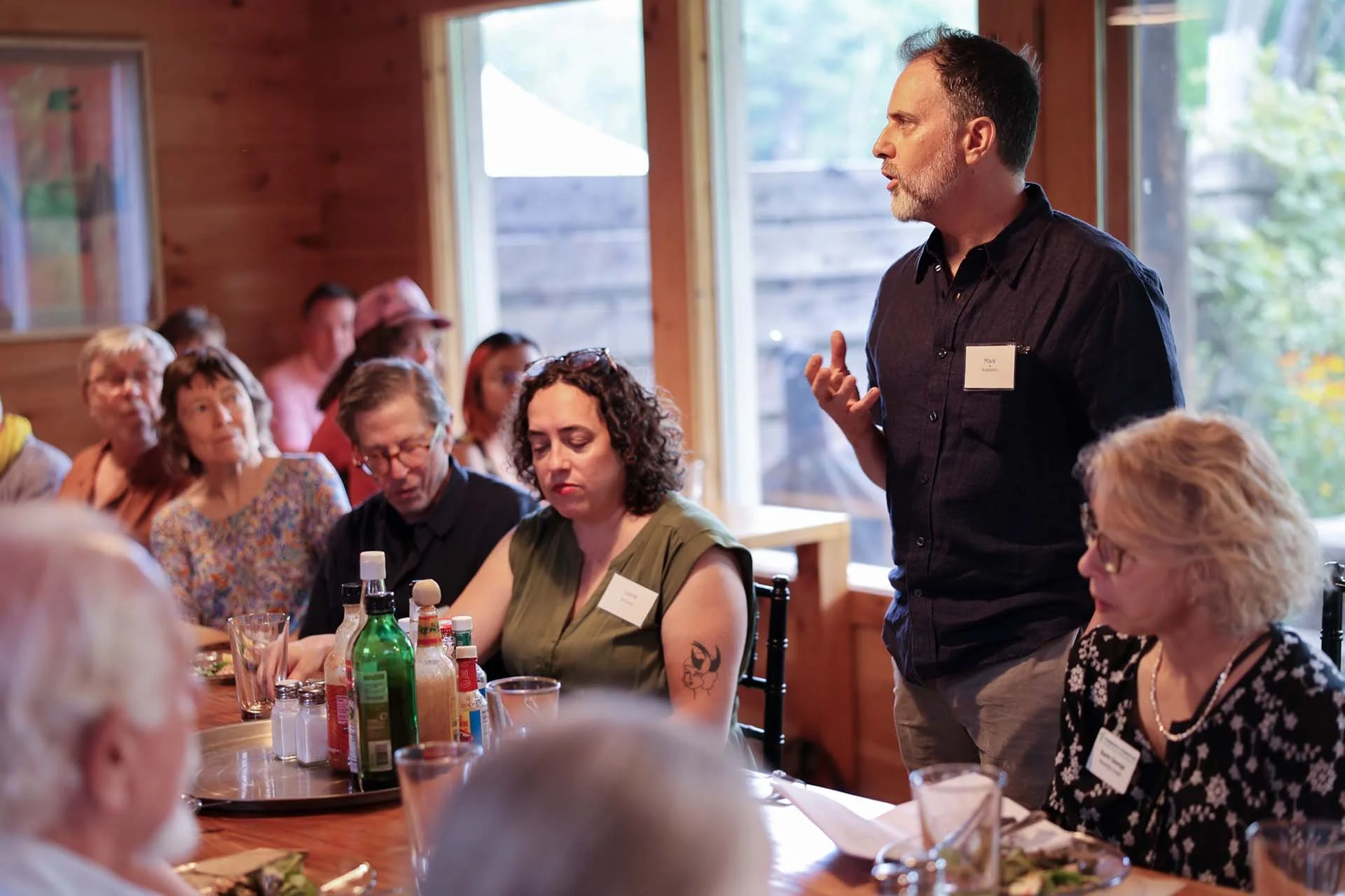 In January 2025, I gathered 20+ ValleyCreates grantees in Springfield—strategically choosing Hampden County with the region's largest artist population and highest concentration of artists of color. Over a catered meal, artists who often work alone in studios shared their practices and connected in-person—suddenly having names, faces, shared struggles.